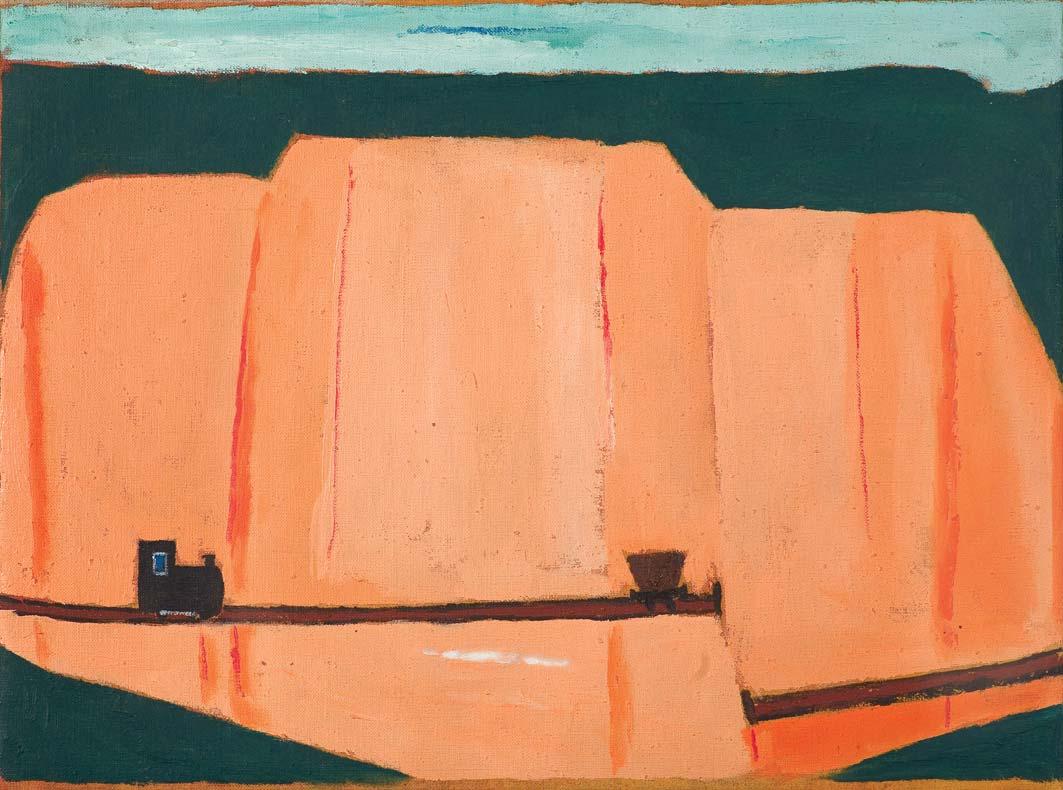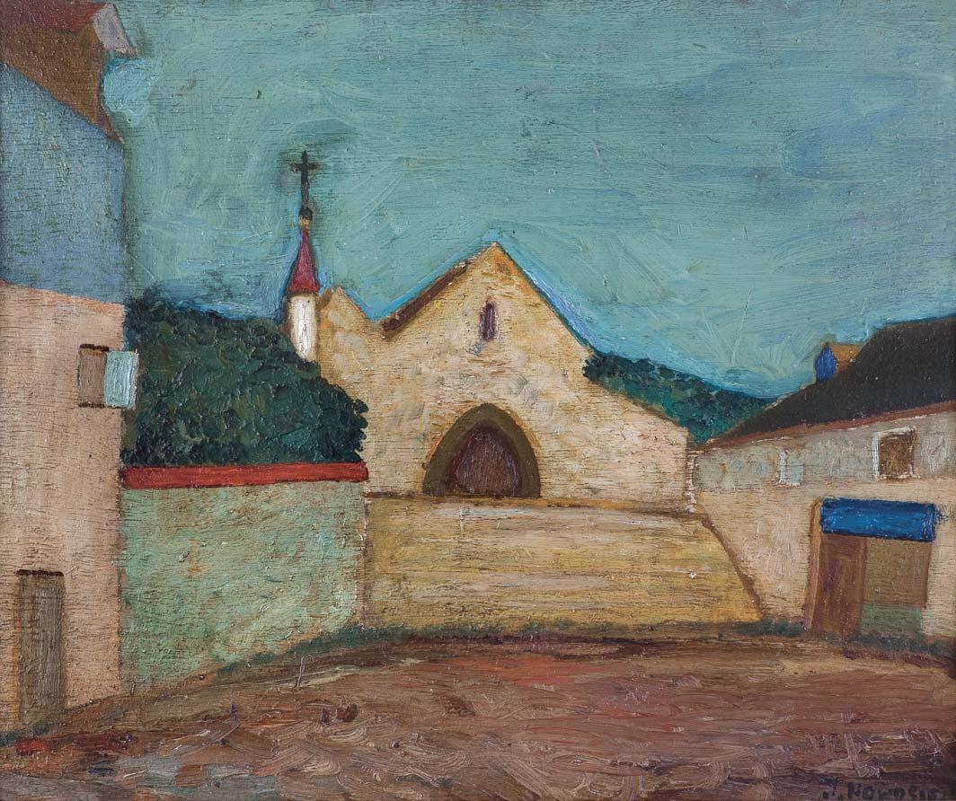 olej, płótno, 33 x 46 cm sygn. p.d.: J. Cybis na odwr. na płótnie napis flamastrem: Jan Cybis „Czerwony daszek“ około 1965-1966 | 33 x 46 | autentyczność stwierdzam: | NYC 10.X.84 r. Helena Cybisowa
