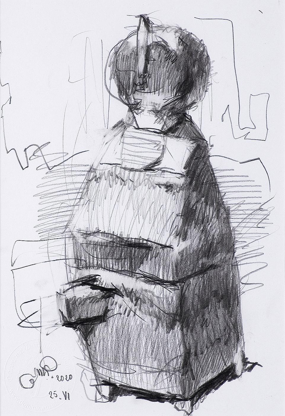 Jego śmierć,ołówek,papier,29.5x21cm,2020