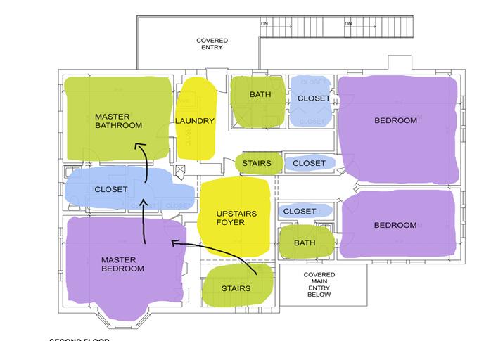 The master bed has a large layout allowing for maneuverability, a closet, and plenty of bathroom space. The bathroom vanity is ADA accessible and the shower allows for a wheelchair access in and has a tub located in the shower area as well. The laundry room can additionally be accessed from The Master suite. A focus will be placed on clean and Sustainable materials. Local suppliers, Fairtrade and sustainable sourced items will be implemented when possible for a healthy and durable environment.