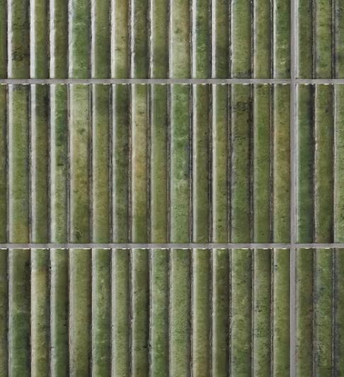 At the heart of the café is a custom service counter clad in vertically stacked green glazed tiles, adding texture and depth while subtly referencing nature and growth. The warm stone countertop adds contrast and durability. The design includes a lowered ADA-accessible counter extension, reinforcing the space’s inclusivity and ease of use for all visitors.