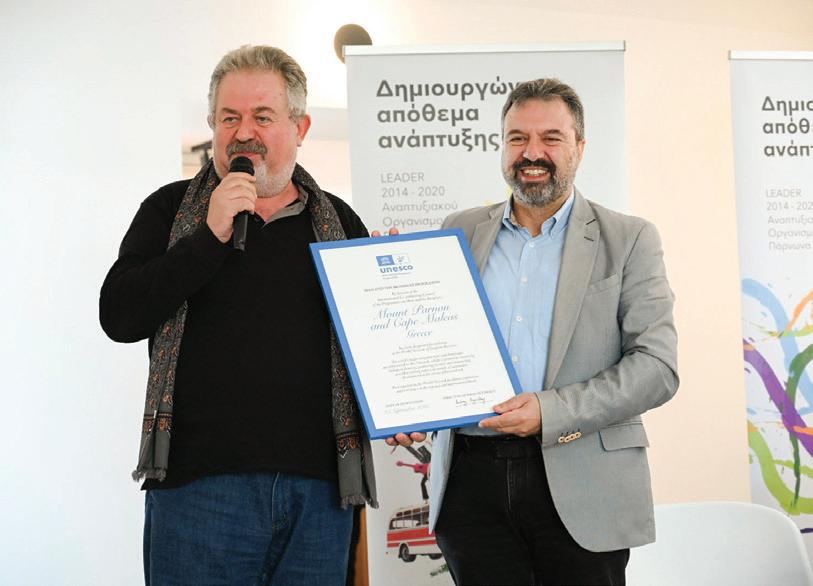 παρθένου ελαιολάδου, πρωτού το ταξίδι συνεχίσει προς τον δήµο Ευρώτα και τη βιοκλιµατική πλατεία Πηγών στη Σκάλα, συνοδεία του δηµάρχου ∆ήµου Βέρδου. Στη συνέχεια πραγµατοποιήθηκαν επισκέψεις σε διάφορες επιχειρήσεις που επωφελήθηκαν από το πρόγραµµα LEADER, όπως τα Γεωργικά Εφόδια Κωστάκου Β. & Σία, το Αρτοποιείο/Ζαχαροπλαστείο Αφοί ∆εληγιάννη και το Ζαχαροπλαστείο Νεράιδα. Αναµφίβολα τις εντυπώσεις έκλεψε η επίσκεψη στο Απολιθωµένο ∆άσος, όπου ο Στάθης Λιβανός (Εκπρόσωπος Πολιτιστικού Εξωραϊστικού