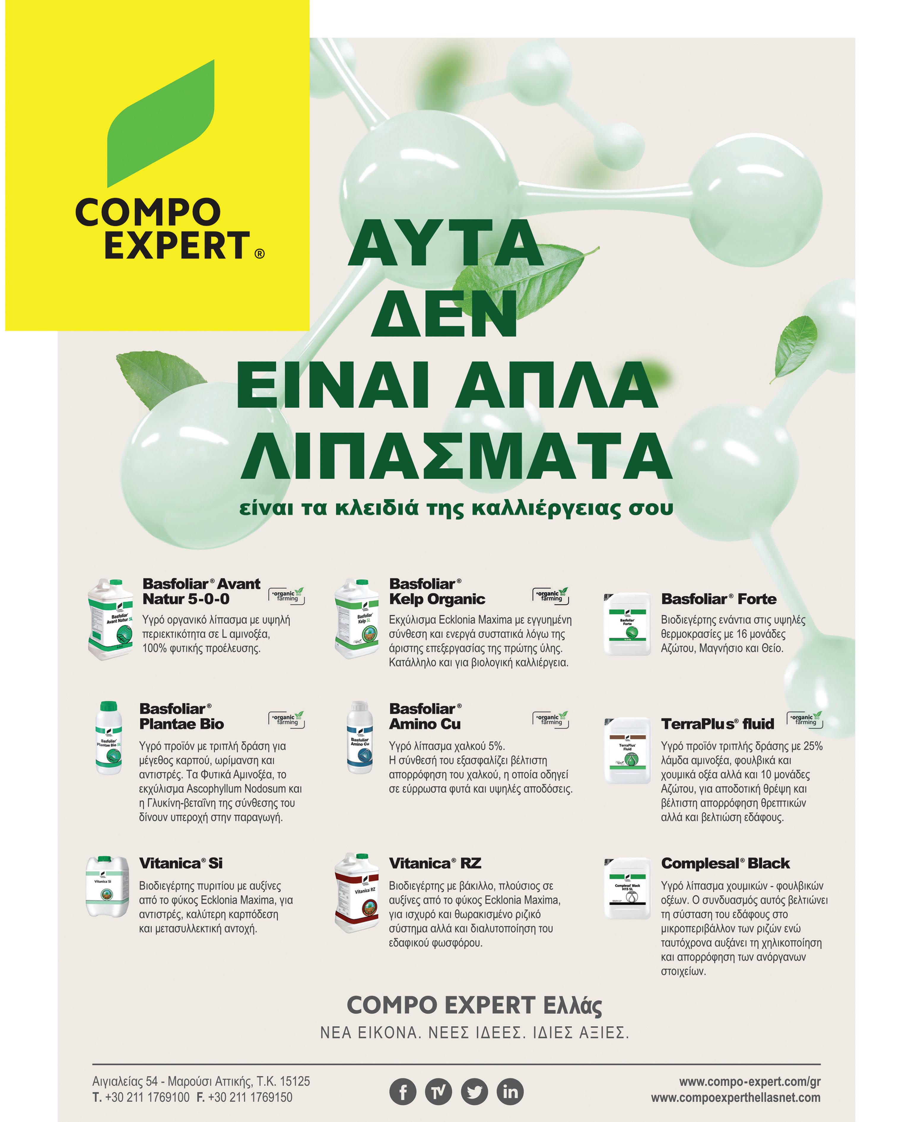 Fitomare®: Ένας βιοδιεγέρτης βασισμένος σε εκχυλίσματα φυκιών (Ascophyllum nodosum). Προάγει την βλάστηση, την ανθοφορία και την καρπόδεση. Αποτελεί άριστο ωσμωπροστατευτικό παράγοντα, ενεργοποιεί την παραγωγή κυτοκινινών και συμβάλλει στην ανάπτυξη της καλλιέργειας σε συνθήκες στρες (ξηρασία, αλατότητα, θερμοκρασία και ασθένειες).