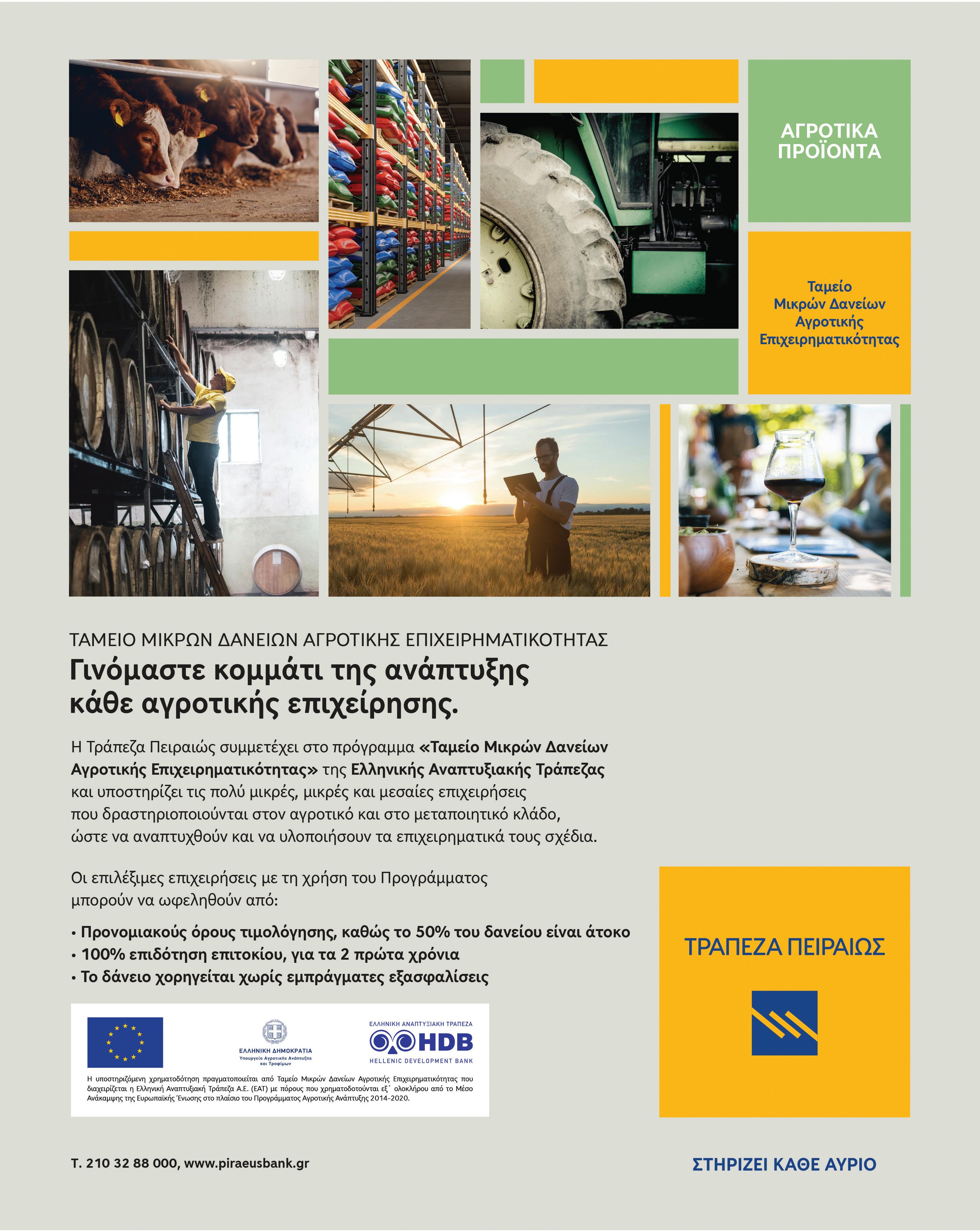 ΣABBATO: † Ζακχαίου Απ., Θεοδώρου Τριχινά Μήνας 4ος, Εβδ. 16η ΗΛΙΟΣ: Ανατολή 06:42 - ∆ύση 20:05 ΣΕΛΗΝΗ: 12 ηµερών ΚΑΙΡΟΣ: Άστατος Αγορά ελαιολάδου Αύξηση κατανάλωσης κρατάει τις τιμές σελ. 36 Μπρέσια και Βερόνα Πολιτιστικό αγαθό ο οίνος στον κόσμο σελ. 38 Σχέδια Βελτίωσης Η επιδότηση επιτοκίου στην τελική ευθεία σελ. 19 Πληρωμές Πόσο νωρίς ήρθε Πάσχα; ΡΕΠΟΡΤΑΖ σελ. 6, 10, 49 Σκληρό σιτάρι Καινούργια κέρδη έγραψε η Φότζια 355 ευρώ ο τόνος ΕΜΠΟΡΕΥΜΑΤΑ σελ. 12, 22, 35 Τιµολόγια ΓΑΙΑ Εντός διμήνου οι συμβάσεις με τους αγρότες