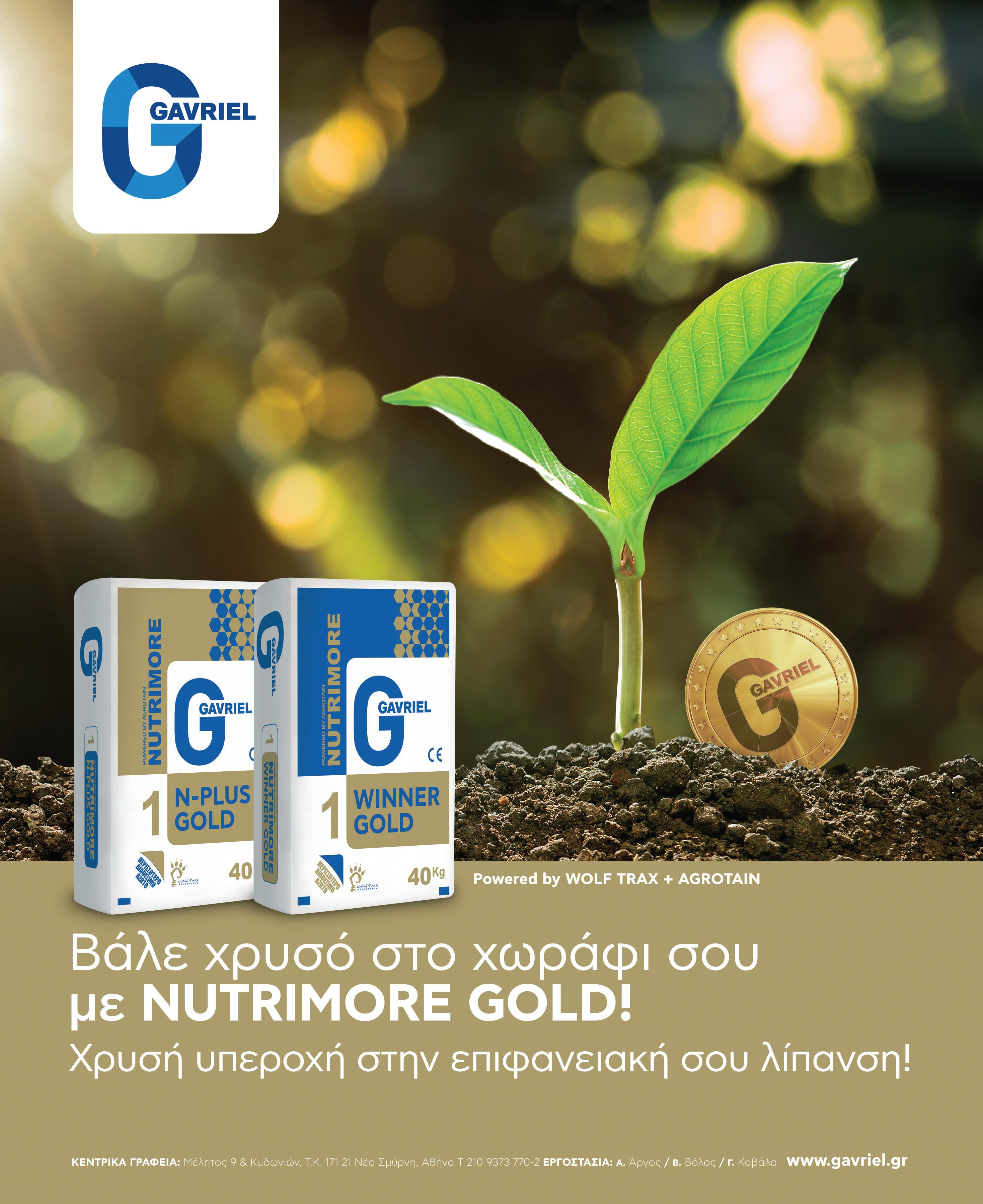 δεδομένου ότι το άζωτο είναι το στοιχείο που επηρεάζει πιο πολύ όλα, τις τελικές αποδόσεις των φυτών. 3. Αύξηση τουλάχιστον 10% της παραγωγής. Επιλέγοντας NUTRIMORE ή NUTRIMORE GOLD στο βαμβάκι αυξάνεται η πρώιμη παραγωγή «καρυδιών» και αποφεύγουμε την βλαστομανία και την φτωχή και όψιμη καρποφορία. Πειραματικά δεδομένα απέδειξαν τουλάχιστον 10% αύξηση παραγωγής και 7% αύξηση παραγωγής βιομάζας (δείκτης άριστης αξιοποίησης του αζώτου που παρέχουμε). Τα NUTRIMORE WINNER και NPLUS, κυκλοφορούν ήδη εδώ και 15 χρόνια στην Ελλάδα, έχοντας αποκτήσει φανατικούς χρήστες για την επιφανειακή λίπανση σε όλες τις καλλιέργειες. Στην γκάμα ήρθαν τώρα να προστεθούν και τα NUTRIMORE GOLD και να κάνουν το καλό ακόμα καλύτερο. Λιπάσματα για απαιτητικούς επαγγελματίες χρήστες που δεν αφήνουν τίποτα στην τύχη του. IΩΑΝΝΑ ΚΑΛΚΟΎΝΟΎ, MARKETING MANAGER ΤΗΣ ΕΤΑΙΡΕΙΑΣ GAVRIEL > Λιπάσματα με ισχυρό άζωτο που υπόσχονται αύξηση τουλάχιστον 10% της παραγωγής και 7% βιομάζας