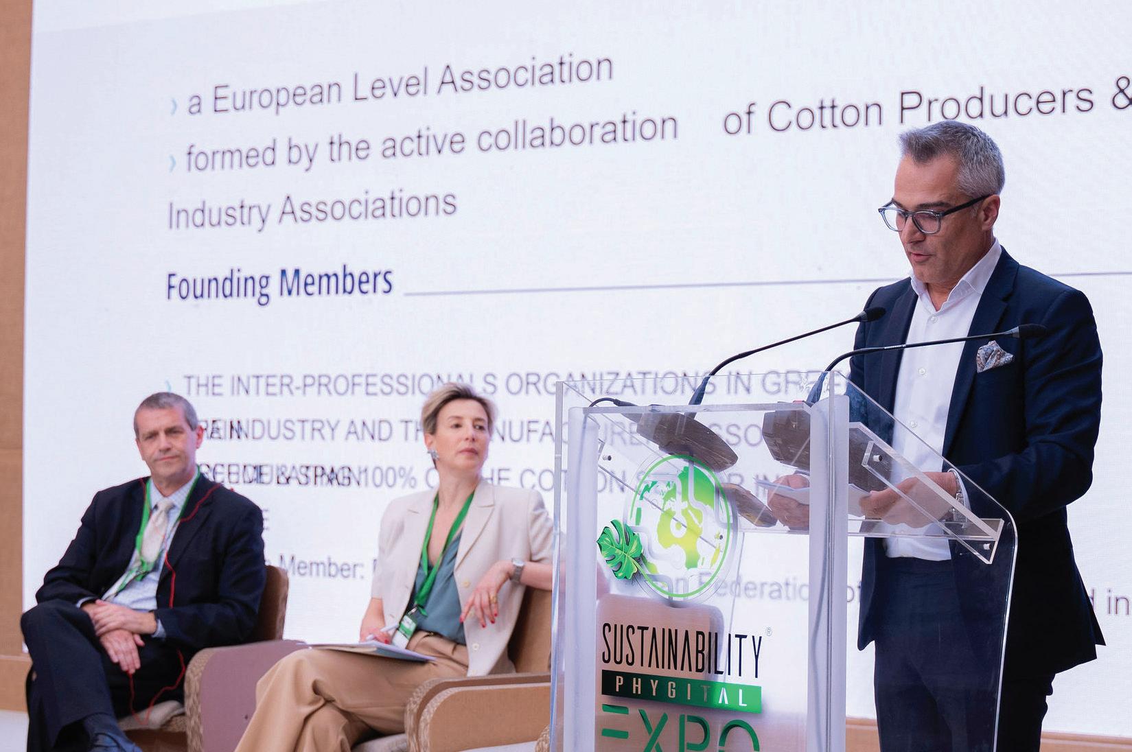 αλυσίδας εφοδιασµού στα πλαίσια της ιχνιλατήσιµης µεταποίησης µιας υψηλής ποιότητας πρώτης ύλης για την παραγωγή επώνυµων τελικών προϊόντων υψηλής ποιότητας µεγάλης περιβαλλοντικής και κοινωνικής αξίας που µπορούν τεκµηριωµένα να εγγυηθούν την ευρωπαϊκή τους προέλευση». Στα επόµενα βήµατα, η πρωτοβουλία EUCOTTON πραγµατοποιεί ειδική ενηµερωτική εκδήλωση –ανοιχτή συζήτηση απευθυνόµενη σε επαγγελµατίες των κλάδων µόδας και κλωστοϋφαντουργίας, η οποία θα πραγµατοποιηθεί στη Θεσσαλονίκη στις 27/6 (Porto Palace, 12.00). Στην εκδήλωση θα παρουσιαστούν οι ενέργειες του ελληνικού κλάδου βάµβακός για τη δηµιουργία ισχυρού brand name για το ευρωπαϊκό βαµβάκι, και την ιχνηλασιµότητα αυτού προκειµένου τα προϊόντα που παράγονται να µπορούν µε αποδείξεις να ισχυριστούν ότι είναι 100% ευρωπαϊκά. Το ελληνικό βαµβάκι αποτελεί το 80% της ευρωπαϊκής παραγωγής. Βραβεύτηκαν σχεδιαστές που συµβάλλουν στο πολιτιστικό αποτύπωµα της Ιταλίας στο χώρο της µόδας. Η βιωσιµότητα και ποιότητα του ευρωπαϊκού βαµβακιού αναδείχθηκαν στη Phygital Sustainability Expo 2024. Το EUCOTTON εκπροσωπήθηκε από τον πρόεδρο της Ευρωπαϊκής Συµµαχίας Βάµβακος Α. Σιάρκο.