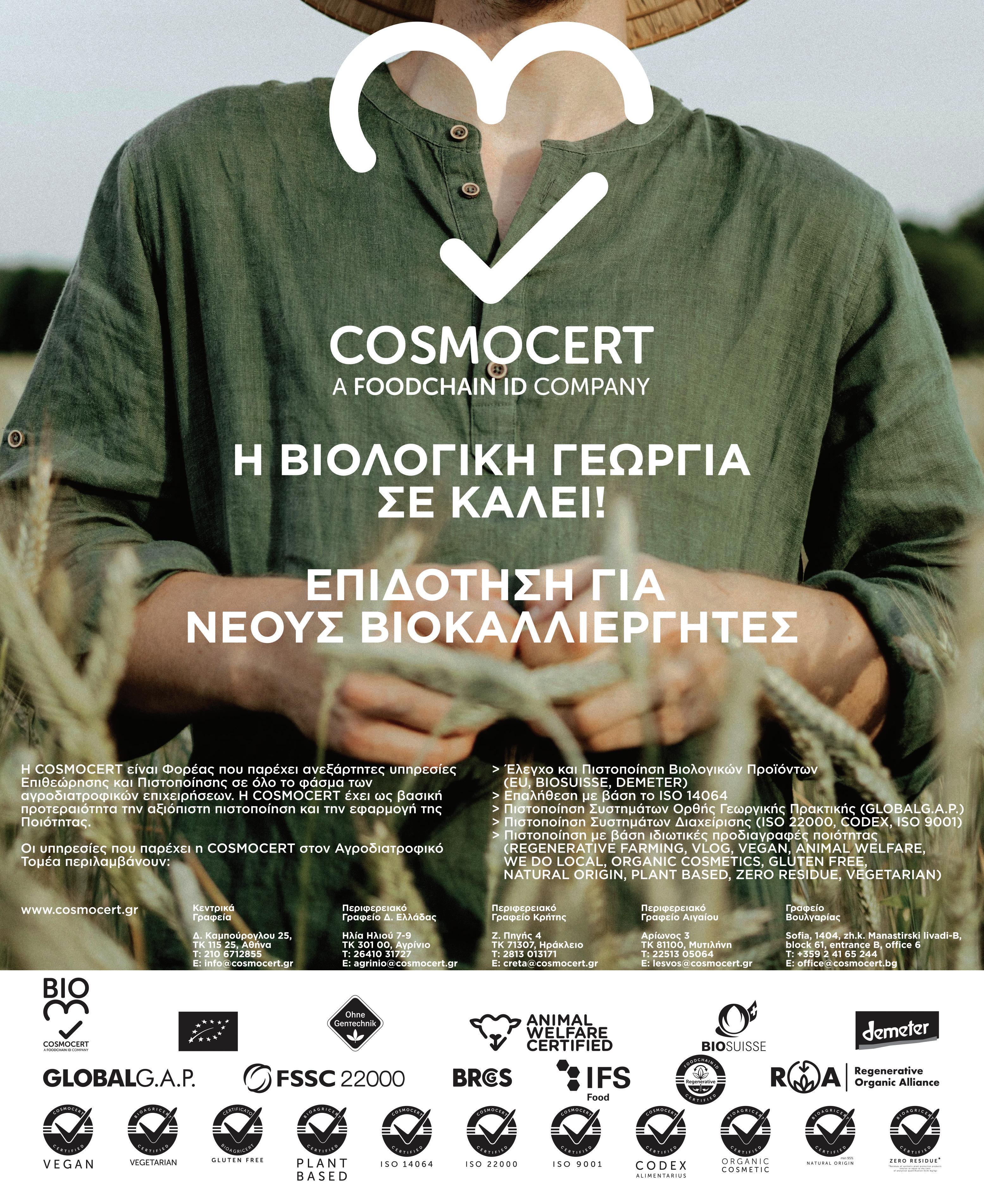 πιστοποίησης. Το 2018, λειτουργεί το πρώτο υποκατάστηµα στα Χανιά, µε σκοπό την άµεση εξυπηρέτηση των αγροτών-κτηνοτρόφων της Περιφέρειας Κρήτης, ενώ το 2021 θέτει σε πλήρη λειτουργία το νέο του υποκατάστηµα στη Θεσσαλονίκη, µε σκοπό την άµεση εξυπηρέτηση των πελατών του στην βόρεια Ελλάδα. Μέχρι στιγµής έχει εκδώσει άνω των 10.000 πιστοποιητικών προϊόντων βιολογικής γεωργίας κατατάσσοντας τον στις πρώτες θέσεις των φορέων στην πιστοποίηση προϊόντων βιολογικής γεωργίας Η πολύχρονη εµπειρία του ΟΞΥΓΟΝΟ µαζί µε τις συνεχείς επεκτάσεις των πεδίων διαπίστευσής του και το καταρτισµένο προσωπικό του, του επιτρέπουν την κάλυψη ενός ευρύτατου φάσµατος αναγκών πιστοποίησης σε όλους τους τοµείς (πρωτογενής, δευτερογενής και τριτογενής) της οικονοµίας. ΑΝΤΩΝΑΚΟΣ ΛΟΥΚΑΣ ΓΕΝΙΚΟΣ ∆ΙΕΥΘΥΝΤΗΣ ΟΞΥΓΟΝΟ M.SC. ΓΕΩΠΟΝΟΣ Ξεχωρίστη πρόσκληση για μελισσοκομία Σε ξεχωρίστη πρόσκληση ύψους 18.858.824 ευρώ θα ενταχθούν οι µελισσοκόµοι που θέλουν να δραστηριοποιηθούν στα βιολογικά και µάλιστα µε 6ετείς δεσµεύσεις. Οι επιδοτήσεις είναι ανάλογα µε τον αριθµό κυψελών/ παραφυάδων που θα δηλώσουν. Συγκεκριµένα η επιδότηση θα έχει ως εξής: Για 20 – 110 κυψέλες ο µελισσοκόµος θα λαµβάνει ετησίως 1.650 ευρώ Για 111 – 200 κυψέλες 5.115 ευρώ. Για 201 – 300 κυψέλες θα λαµβάνει 8.580 ευρώ. Για 301 κυψέλες, 10.230 ευρώ. Για να κάνουν αίτηση οι µελισσοκόµοι θα πρέπει να έχουν συνάψει σύµβαση µε ΟΕ&Π από τις 16 Ιουνίου 2024 έως και τις 30 Ιουνίου 2024. Αναλυτικότερα στην προδηµοσίευση αναφέροντα τα εξής: ∆ικαιούχοι της Παρέµβασης µπορούν να κριθούν οι κάτωθι: Φυσικά και νοµικά πρόσωπα ή οµάδες αυτών κάτοχοι µελισσοκοµικής ταυτότητας και εγγεγραµµένοι στο Εθνικό Ηλεκτρονικό Μελισσοκοµικό Μητρώο, που κατέχουν από 20 και πάνω κυψέλες/ παραφυάδες. Επιλέξιµες είναι οι εκµεταλλεύσεις οι οποίες δεν είναι ενταγµένες στο σύστηµα ελέγχου της βιολογικής γεωργίας σύµφωνα µε τον Κανονισµό (ΕΚ) 848/2018, µέσω σύµβασης µε Οργανισµό Πιστοποίησης και Ελέγχου, στις 15 Ιουνίου 2024. Απαραίτητη προϋπόθεση για την υποβολή της αίτησης στήριξης είναι να έχει προηγηθεί από τους υποψηφίους η υποβολή της ενιαίας αίτησης ενίσχυσης (ΕΑΕ) έτους 2024. Αρχές Κριτηρίων επιλογής Οι αρχές κριτηρίων επιλογής είναι οι κάτωθι: Γεωργοί νεαρής ηλικίας. Εντασσόµενες κυψέλες/παραφυάδες, µε προτεραιότητα στους µελισσοκόµους µε µικρές και µεσαίες εκµεταλλεύσεις Έδρα Εκµετάλλευσης, µε προτεραιότητα σε ορεινές, µειονεκτικές και νησιώτικες περιοχές. Έδρα εκµετάλλευσης σε περιβαλλοντικά ευαίσθητες περιοχές. ∆εσµεύσεις δικαιούχων Οι δεσµεύσεις των δικαιούχων εκκινούν από τις 30 Ιουνίου 2024 και είναι διάρκειας έξι (6) ετών. Οι δικαιούχοι δεσµεύονται: Να έχουν συνάψει σύµβαση µε ΟΕ&Π από τις 16 Ιουνίου 2024 έως και τις 30 Ιουνίου 2024 Να διατηρούν τουλάχιστον τον αριθµό των κατεχόµενων κυψελών/παραφυάδων µε τα οποία εντάχθηκαν στην Παρέµβαση, πλην των περιπτώσεων ανωτέρας βίας - εξαιρετικών περιστάσεων.