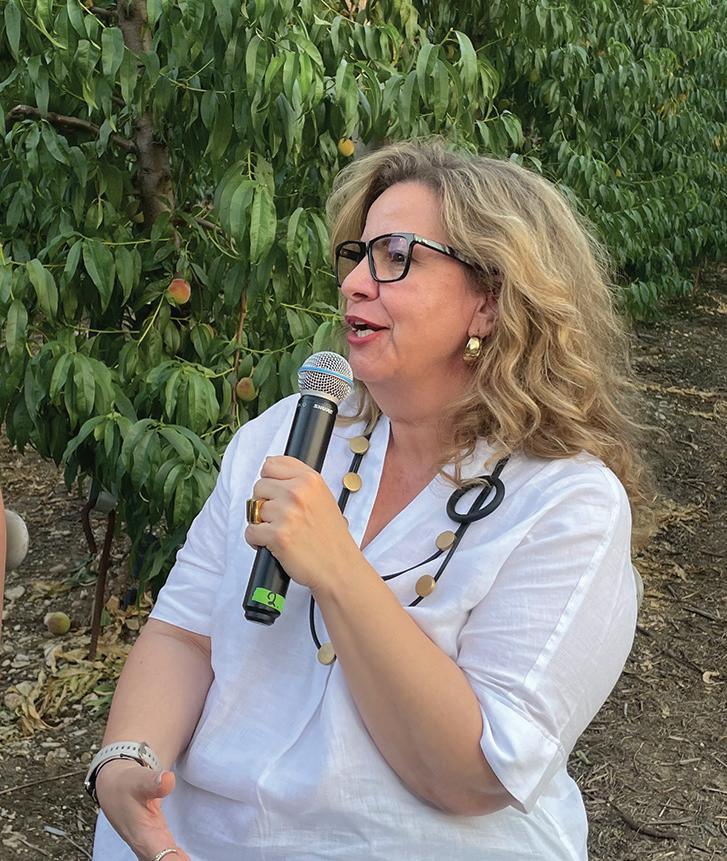αριστουργήµατα τέχνης, που εκτέθηκαν στον ροδακινεώνα υπό τον εύγλωττο τίτλο «Peach of Art» απογείωσε η αποκάλυψη ότι αποτελούν προϊόν οµαδικής συνεργασίας 175 µαθητών, µόλις της ∆’ Τάξης, ενός ιδιωτικού δηµοτικού σχολείου της Αθήνας. Ένας «ήρωας» του πρωτογενούς τοµέα, στα µάτια των παιδιών Λίγους µήνες νωρίτερα, τους είχε επισκεφτεί στο σχολείο τους, ο Νίκος Κεσσίδης και µε τις αφηγήσεις του για το πώς καλλιεργείται το ροδάκινο µετατράπηκε σε ήρωα στα µάτια των µαθητών, όπως αποκάλυψαν τρεις δασκάλες τους, οι οποίες βρέθηκαν στο Κτήµα Κεσσίδη και µετέφεραν την εµπειρία τους. «Ξετρελάθηκαν τα παιδιά, µε την παρουσίαση του κ. Κεσίδη. Ήταν µία τέλεια εµπειρία και µπορείτε να δείτε αυτά που µετέφεραν στον καµβά, µε πολλή αγάπη, κόπο και µεράκι, ανταλλάσσοντας ιδέες µε πνεύµα συνεργασίας. Ήταν µία από τις top δράσεις του έτους για τα παιδιά της ∆’ ∆ηµοτικού και θα τη θυµούνται περισσότερο από όλη τη χρονιά», σχολίασε η Αναστασία Σουρλατζή, εικαστικός στο δηµοτικό σχολείο CGS. Η δράση έγινε σε συνεργασία µε την BASF στο πλαίσιο της εκπαιδευτικής ενότητας «Εµείς κι ο τόπος µας» που εφαρµόζει το CGS. «Είναι άλλο να το ακούς στη θεωρία και τελείως διαφορετικό να βλέπεις έναν ήρωα, στα µάτια των παιδιών, του πρωτογενούς τοµέα, να τους δείχνει εικόνες που τους είναι ξένες µε τους τεράστιους ροδακινεώνες, µε καρπούς, µε τα ροζ λουλούδια και ήταν η έµπνευσή τους για να τα αποτυπώσουν. Πραγµατικά ο ενθουσιασµός τους ήταν πολύ µεγάλος», ανέφερε και η Αλίκη Μπουγιούκου, διευθύντρια του δηµοτικού σχολείου CGS. Η πιο σηµαντική δουλειά στον πλανήτη Η ιδέα, ωστόσο, ο πρώτος σπόρος, για αυτή τη µοναδική εκδήλωση που συνδύασε το επάγγελµα του αγρότη, µε την τέχνη, «έπεσε στο χώµα και άνθισε» από τη BASF. «Η BASF έχει ένα παγκόσµιο project, να εξηγήσει τη σπουδαιότητα του επαγγέλµατος του παραγωγού, διότι έκανε µια έρευνα και διαπίστωσε πως το ευρύ κοινό δεν κατανοεί τη σοβαρότητα και την ανάγκη να δώσουµε έµφαση στο επάγγελµα του αγρότη και στη γεωργία γενιΣκοπός της πρωτοβουλίας της BASF Hellas είναι μέσα από τη δράση να αναδειχθεί όλη η αλυσίδα αξίας του ροδάκινου και το περιβάλλον, με τους πίνακες ζωγραφικής και τις φορτωμένες ροδακινιές, αποτέλεσε ιδανικό «προσάναμμα» για να «φουντώσει» η φλόγα της συζήτησης στο τραπέζι, ενόσω δοκιμάζαμε τα πιάτα, με την επίγευση ροδάκινου Σάββατο 22 & Κυριακή 23 Ιουνίου 2024 Agrenda B4 | 26
