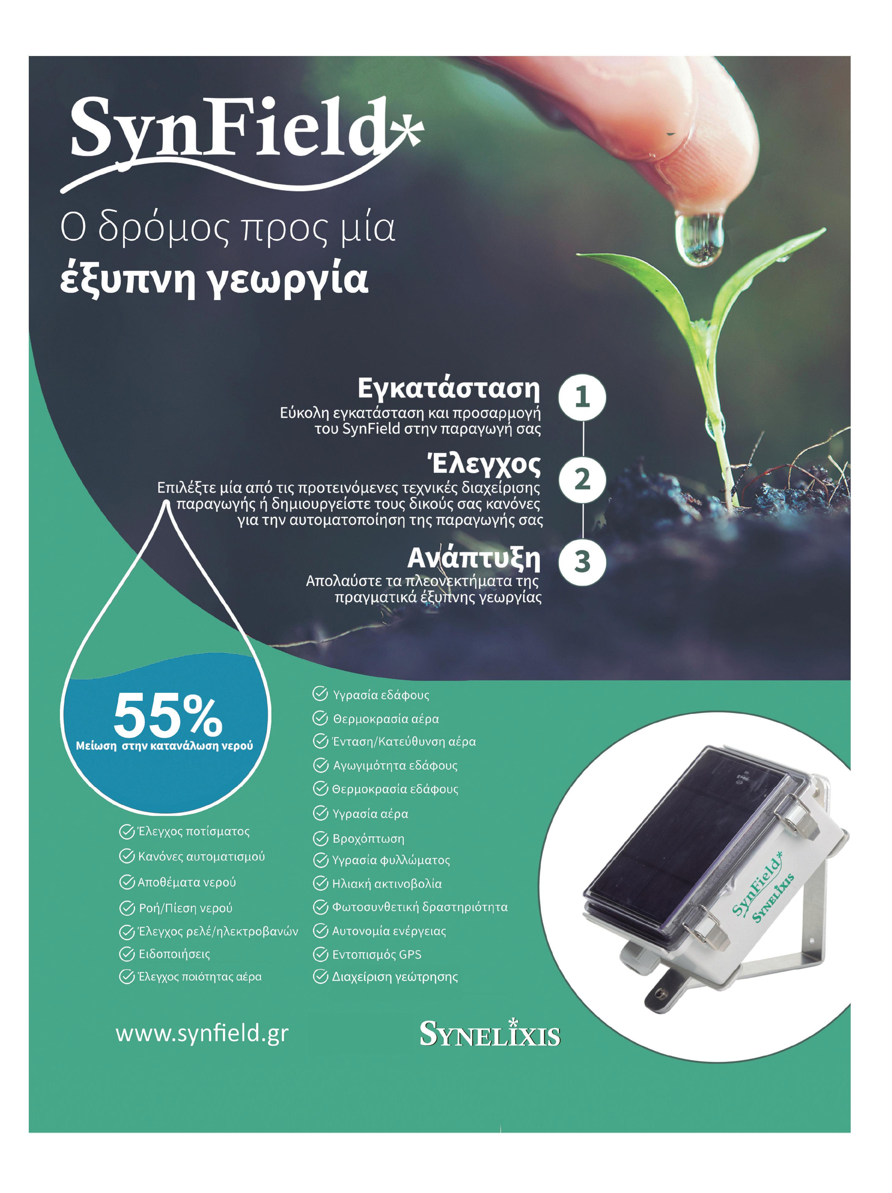 το χωράφι. Ακόµα, µέσω της παρακολούθησης κρίσιµων παραµέτρων της καλλιέργειας όπως της υγρασίας και της ηλεκτρικής αγωγιµότητας του εδάφους σε πραγµατικό χρόνο, υποστηρίζει τη λήψη βέλτιστων αποφάσεων λίπανσης. ■ Απομακρυσμένος έλεγχος: Παρακολούθηση κρίσιµων παραµέτρων σε πραγµατικό χρόνο µέσω υπολογιστή,