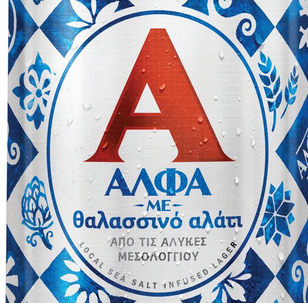 Χρυσαφένια, ευκολόπιοτη και δροσιστική η ΑΛΦΑ εμπλουτίζεται με μια μικρή ποσότητα ανεπεξέργαστου θαλασσινού αλατιού από τις αλυκές Μεσολογγίου και αποκτά εικαστική ταυτότητα εμπνευσμένη από τον τενεκέ της Φέτας και την ελληνική ύπαιθρο. (Αθηναϊκή Ζυθοποιία)