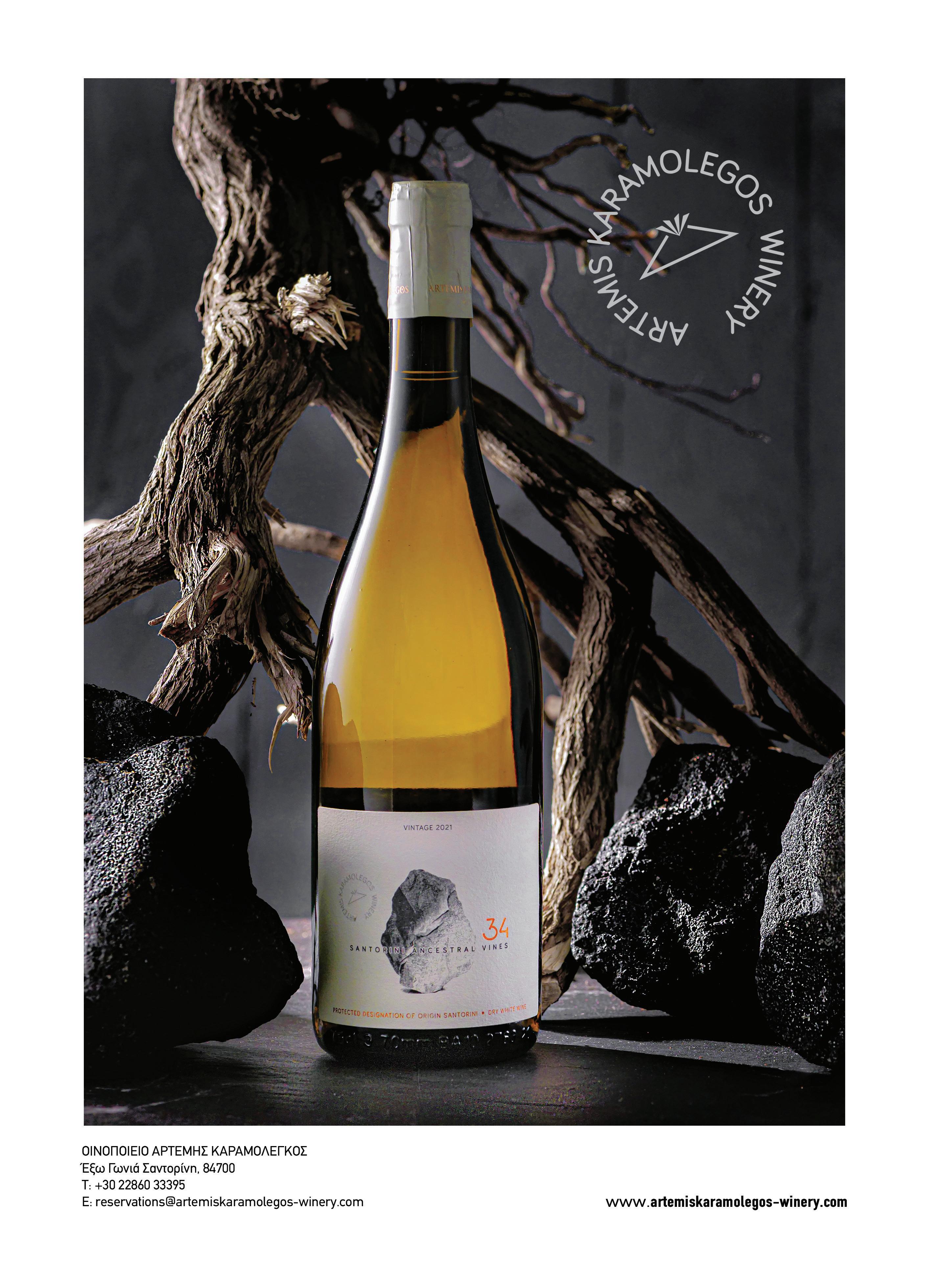 «34»: Μια έκφραση τυπικότητας Το «34» εμπνευσμένο από τις μαύρες ηφαιστειακές πέτρες που περικλείουν τους αμπελώνες του νησιού, προέρχεται από γηραιά αμπελοτόπια