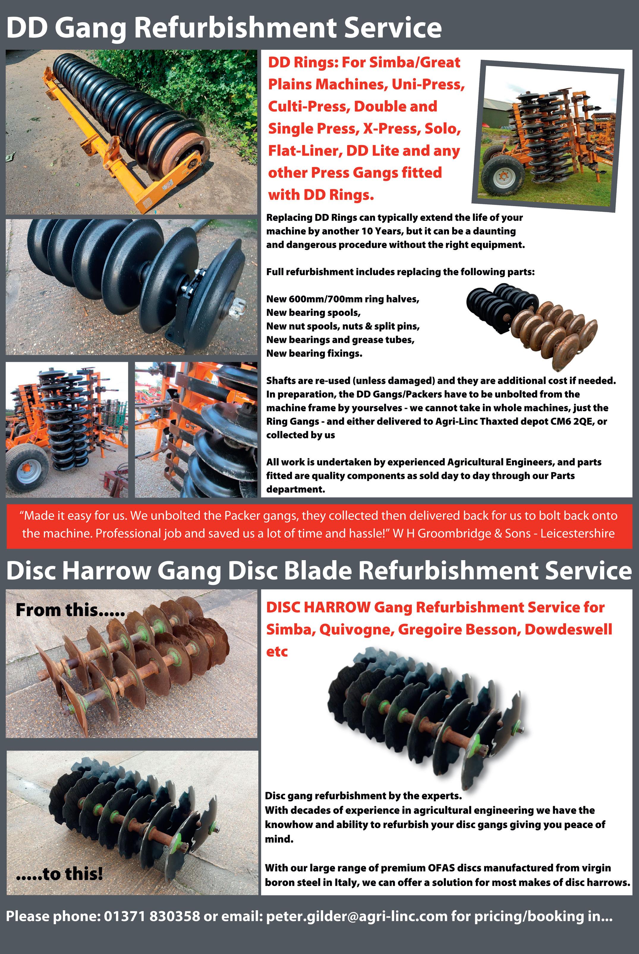 INVERTA and INVERTAMAX machines, including wearing parts such as •510mm (20") cutaway class leading discs •SKF maintenance free bearings •500mm crumbler roller, (550mm tooth packer instead £1000 extra) Proforge Invertamax Pro heavy short-disc, speed-disc harrow cultivator.