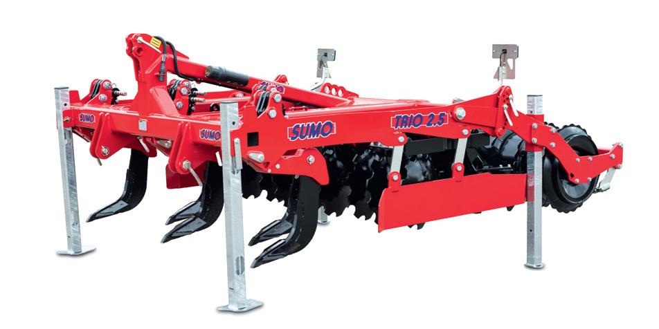 NEW MACHINERY 230 VIEW MORE IMAGES ON OUR WEBSITE: www.agri-linc.com All prices shown exclude VAT and delivery charges Sumo Machinery SUMO TRIO - MOUNTED CULTIVATOR - AUTO RESET • Tine-Disc-Press Best Selling Combination Cultivator •Tungsten Tipped Points and Low Draft Legs •2 Rows of 500mm Cutaway Discs •760mm MultiPacker with Shouldered Rings and Drive Lugs •Removable Disc Module •Hydraulic Auto-Reset Code Size Direct £ MN100319 2.5m, 2515kgs, 5 Tine-Disc-Press, Auto Reset 21950.00 MN100318 3.0m, 2795kgs, 6 Tine-Disc-Press, Auto Reset 24750.00 SUMO TRIO - MOUNTED CULTIVATOR - SHEAR PIN •Tine-Disc-Press Best Selling Combination Cultivator •Tungsten Tipped Points and Low Draft Legs •2 Rows of 500mm Cutaway Discs •760mm MultiPacker with Shouldered Rings and Drive Lugs •Removable Disc Module •Multi-Shear knock through Shear pin SUMO : A name rich in tradition and synonymous with strength and power. Sumo help farmers lower input costs, improve yields & protect the environment using our range of efficient, British-built machinery. SUMO GLS (Grassland Subsoiler) Code Size MN100320 2.3m, 1625kgs, 4 Leg with Front Discs 12850.00 Code Size Direct £ MN100321 2795.00 SUMO LMD HEADSTOCK (Linkage Mounted Drawbar) •Increases the manoeuvrability of Sumo and non-Sumo trailed machines. • Heavy Duty Cat 3/4, c/w pipe bracket, parking stands, • 80mm Scharmuller Bar and Locating catch • Sealed AgriHub Maintenance-Free Bearings • Comes as standard with Category 3 Pins only • Category 4 Pin Set optional extra - PA303157 • Rated to 400HP Max 500mm Serrated Leading Discs, which cuts the grass sward and initiates the rip line for the ensuing leg. • Low Draft Hyd Auto-Reset Legs, 580mm Leg Spacing. This is for optimal lift/shatter and aerating in a grassland environment. • Flat packer, leaving an aerated, consolidated and level finish •1625 kg Weight SUMO TRIO - TRAILED FOLDING Code Size Direct £ MN100397 4.5 m, 8631kgs, 9 TInes POA Code Size Direct £ MN100369 2.5m, 2468kgs, 5 Tine-Disc-Press, Shear Pin 19950.00 MN100317 3.0m, 2855kgs, 6 Tine-Disc-Press, Shear Pin 22450.00 SUMO RIPPA - MOUNTED CHISEL PLOW CULTIVATOR Code Size Direct £ MN100329 3.0 m, 1425kgs, 11 TInes 11450.00 • Heavy-duty deep cultivation tool to rip up the land, aiding aeration of the soil • Mounted format ensures good control and maintained traction • Resin-filled puncture proof-tyres • Reversible 80mm wide points • Shearbolt Protection • 9 Tine Disc Press c/w front discs • Auto-reset Tungsten Tipped Points and Low Draft Legs Reversible 80mm wide points • Hydraulic Auto-Reset 2 Rows of 500mm Cutaway Discs • 800mm MultiPacker with Shouldered Rings and Drive Lugs • Removable Disc Module Due in Jan 2023 Order Parts, attachments, consumables, accessories ONLINE 24/7 WWW.AGRI-LINC.COM