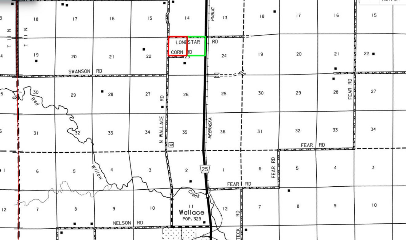 Located approximately 5 miles north of Wallace, Nebraska, with Parcel 1 on the corner of US Highway 25 and Lonestar Road, and Parcel 2 being 1/2 mile west of the Highway on Lonestar Road.