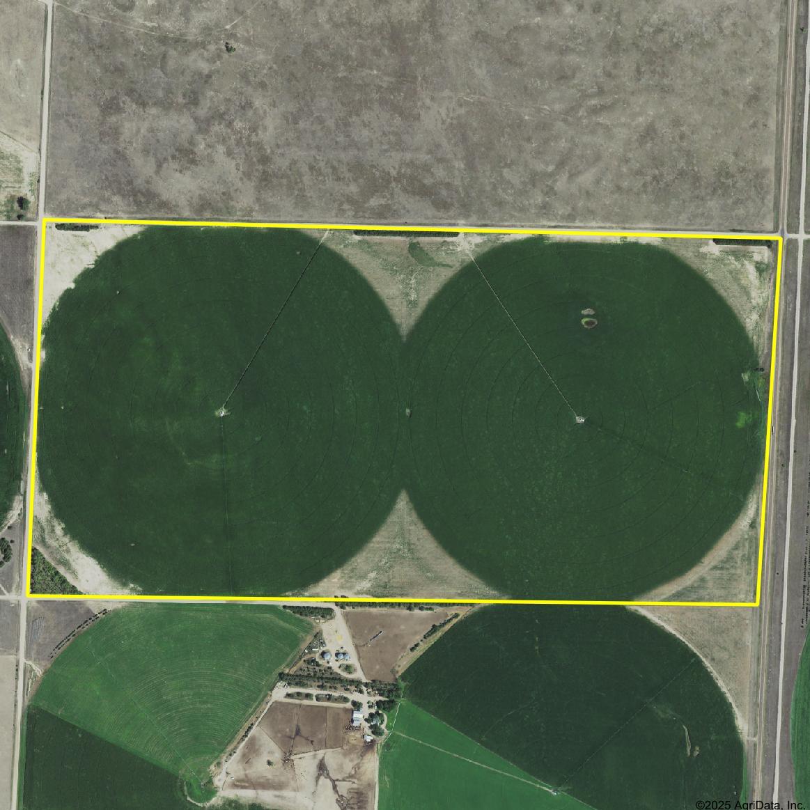 Situated in a strong farming community north of Wallace, Nebraska, this property offers excellent access via Lonestar Road and US Highway 25. The two irrigated quarters feature well-maintained Valley Electric Pivot systems, productive soils, and 294.8 ± certified irrigated acres within the Middle Republican Natural Resources District.
