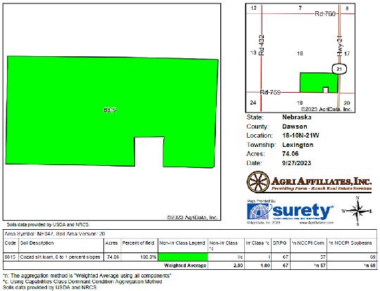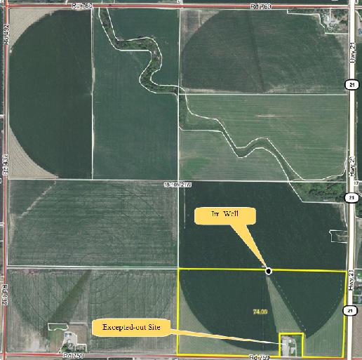The farm is located in the Central Platte Natural Resources District and contains a total of 74.06 certified irrigated acres. The well is located along the north border and provides water to a tenant-owned, reversing pivot irrigation system.