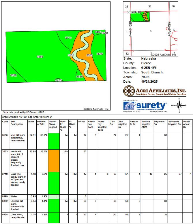 PROPERTY DESCRIPTION: Pierce County Assessor indicates a total of 78.98 tax-assessed acres. Farm consists of gravity-irrigated cropland with a small amount of dry crop and Elkhorn River accretion land.