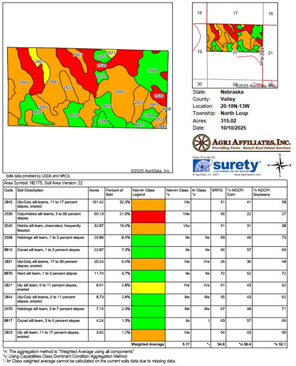 SOILS SUMMARY: Soils consist of Uly, Coly, Hobbs, Holdrege, Cozad, and Hord silt loams with slopes ranging from 1-60%.