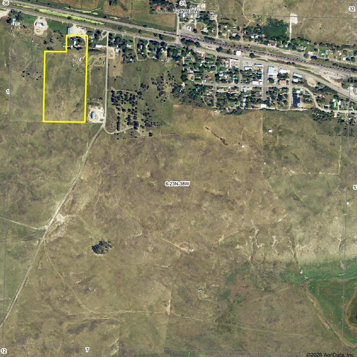 Parts of Section 6, Township 23 North, Range 38 West of the 6th P.M. in Grant County, Nebraska, described as: All except north 205’ in lots 9 & 10. All except north 440’ lot 11 & north 485’ lot 12 - Abbott’s Addition to Hyannis (18.87A).
