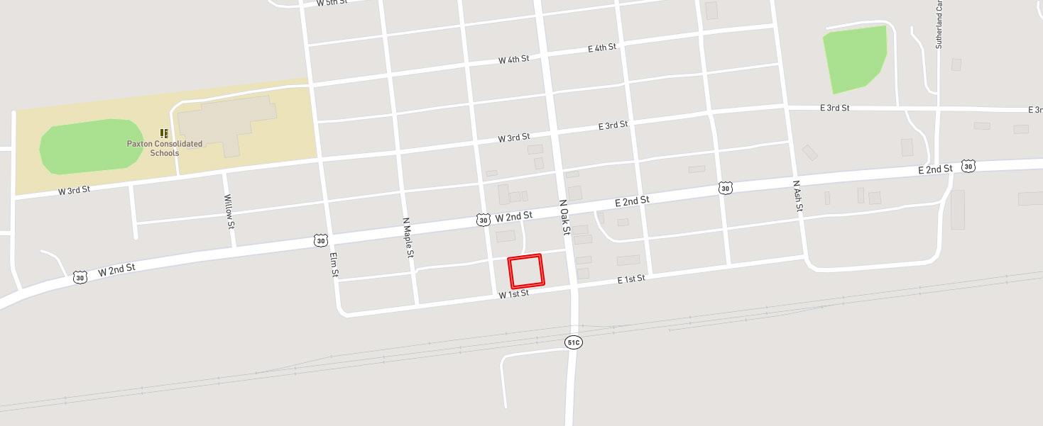 Located north of the co-op scalesSouth of Highway 30 at the intersection of N. Pine Street and W. 1st St. in Paxton, Nebraska