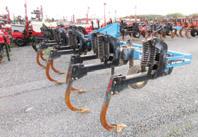 Ramasse-roches pour tracteur de 50 à 400 hp. Peut pénétrer le sol à une profondeur de 10 po avec pression vers le bas. Ramasse les roches de 1 à 24 po, peut-être adapté en option avec un convoyeur pour charger une remorque ou camion benne.