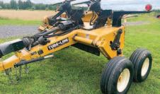 Ramasse-roches pour tracteur de 50 à 400 hp. Peut pénétrer le sol à une profondeur de 10 po avec pression vers le bas. Ramasse les roches de 1 à 24 po, peut-être adapté en option avec un convoyeur pour charger une remorque ou camion benne.