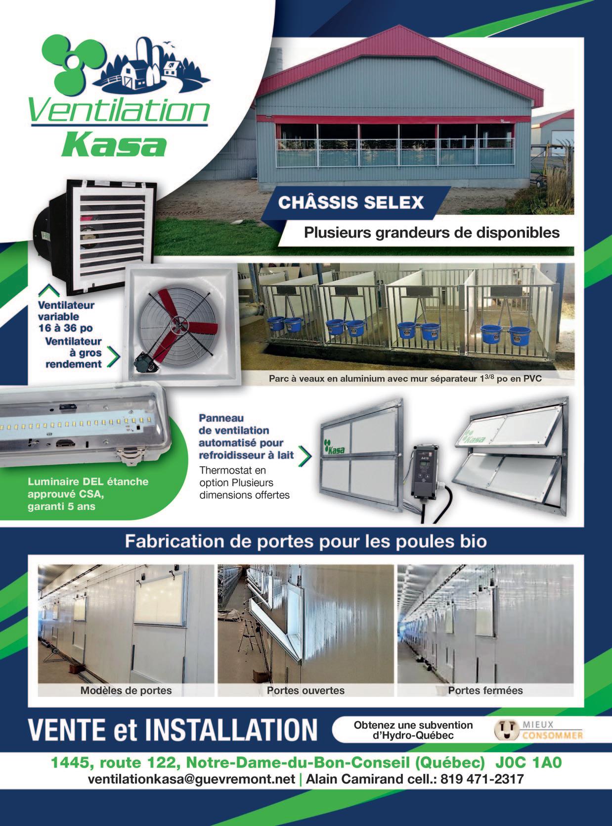 un retour sur investissement rapide (environ 2 ans) et le confort d’une logette creuse au sable… sans les inconvénients. Comme la Ferme du Petit 5 inc. et la Ferme Claudie 2006, faites des gains pour vous et vos vaches : contactez Distribution S. Léger, de Lavaltrie, seule entreprise à distribuer, dans l’est du Canada, des matelas d’eau DCC Waterbeds dont les doubles parois isolées procurent stabilité et confort tout en assurant la durabilité du produit. L’entreprise compte 4 représentants et 2 employés, tous soucieux d’assurer un excellent service à la clientèle. Voir l’annonce de DCC Waterbeds à la page 10