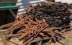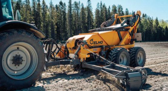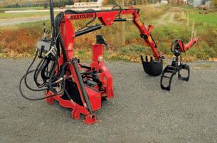 Ramasse-roches, pour les grosses roches avec benne basculante et bras pour extraire les roches prise dans le sol.