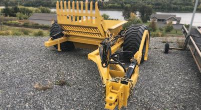 Ramasse-roches pour tracteur de 50 à 400 hp. Peut pénétrer le sol à une profondeur de 10 po avec pression vers le bas. Ramasse les roches de 1 à 24 po, peut-être adapté en option avec un convoyeur pour charger une remorque ou camion benne.