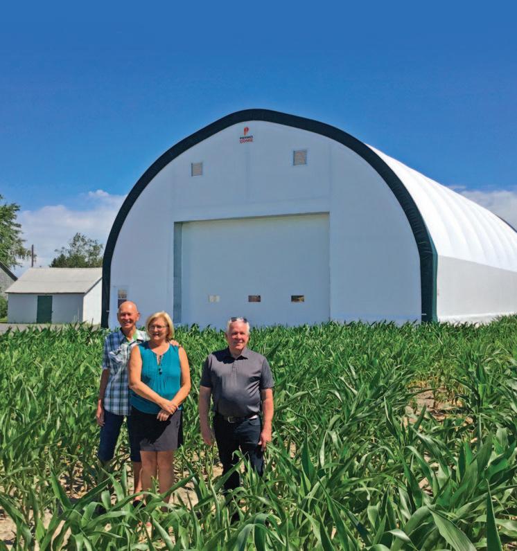Lucie et Jean-Pierre cultivent 111 acres de maïs et 47 acres de soya. Leur labeur nécessite donc de la machinerie bien protégée et entretenue. Pour répondre à ce besoin, Jean-Pierre Frappier, représentant pour Les Industries Permo inc., leur a proposé un dôme VHP600 de 50 pieds par 90 pieds composé de structures d’acier et d’une membrane souple.