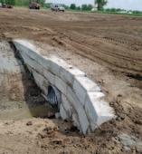 Si la fondation est composée de blocs de béton, ces derniers sont reliés par une plaque de métal. La membrane recouvre alors le côté extérieur du