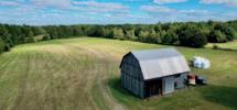 Fermette de 102 acres avec maison, garage détaché et grange sur trois étages, propre et fonctionnelle. Environ 12 acres en foin, le reste en boisé mixte avec plantations matures, sentiers aménagés et potentiel pour érablière.