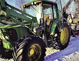 John Deere 5500, 1997, 3 800 h, 4RM, cab., transm. avec inverseur hydraul., lame à neige 8 pi. avec direction hydraul. 21 500 $