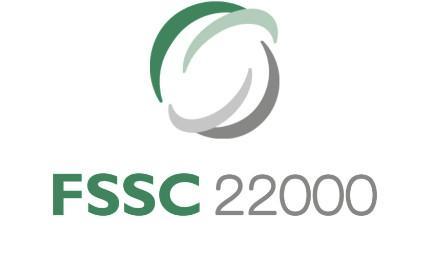 The company's products meet FSSC 22000 food safety standards, recognized globally.