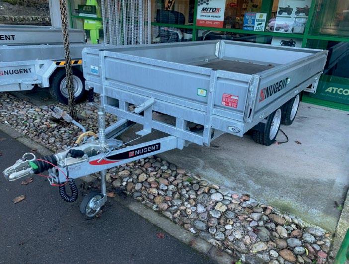 Nugent heavy duty flatbed trailer £3750 2700kg, internal size: 3.05m x 1.84m marine ply flooring, Knott brakes, “silent” dropsides, lockable ramp store, LED lights.