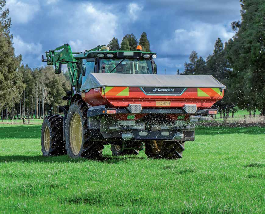 A TRUCK HAS TYPICALLY BEEN THE APPLICATION VEHICLE OF CHOICE FOR SPREADING CONTRACTORS, BUT A MID CANTERBURY BUSINESS HAS DIVERSIFIED BY INTEGRATING A TRACTOR-MOUNTED SPREADER INTO THEIR FLEET.