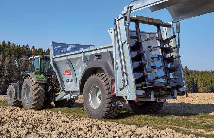 With its scales, the Geospread automatically calibrates as it goes. Working speed is 16-18 kph. The spinners’ rpm are independent of the tractor speed, keeping rates consistent.