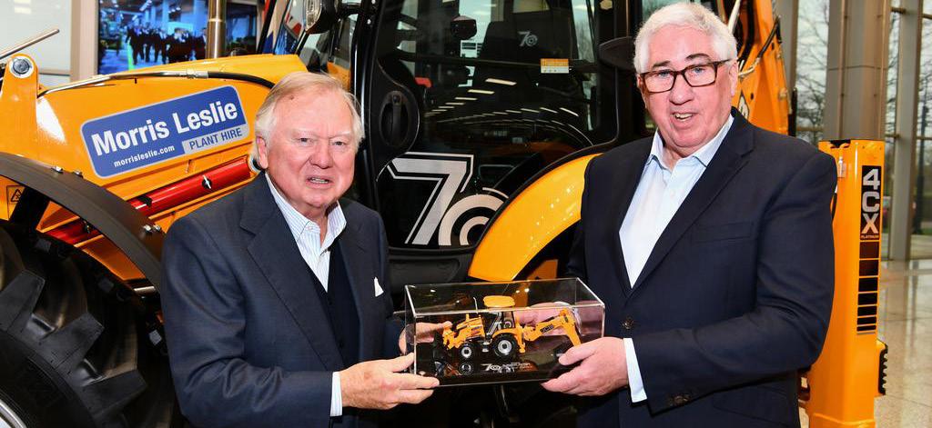 Bamford handed over the keys to one of the backhoes to Founder Morris Leslie –a special Platinum Edition machine produced to mark the JCB backhoe’s 70th birthday. Lord Bamford said: “We are very proud of our long association with Morris Leslie Plant Hire. Like many of our customers, the company has grown from very small beginnings into a force to be reckoned with in the plant hire sector. From one family company to another, we wish Morris Leslie Plant Hire a very happy 50th birthday.”