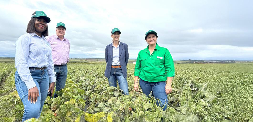 Dr Temitope Jekayinoluwa (GRDC), Agri-Science Queensland executive director Wayne Hall (DPI), Rebecca Raymond (GRDC) and Merrill Ryan (DPI) inspecting a trial