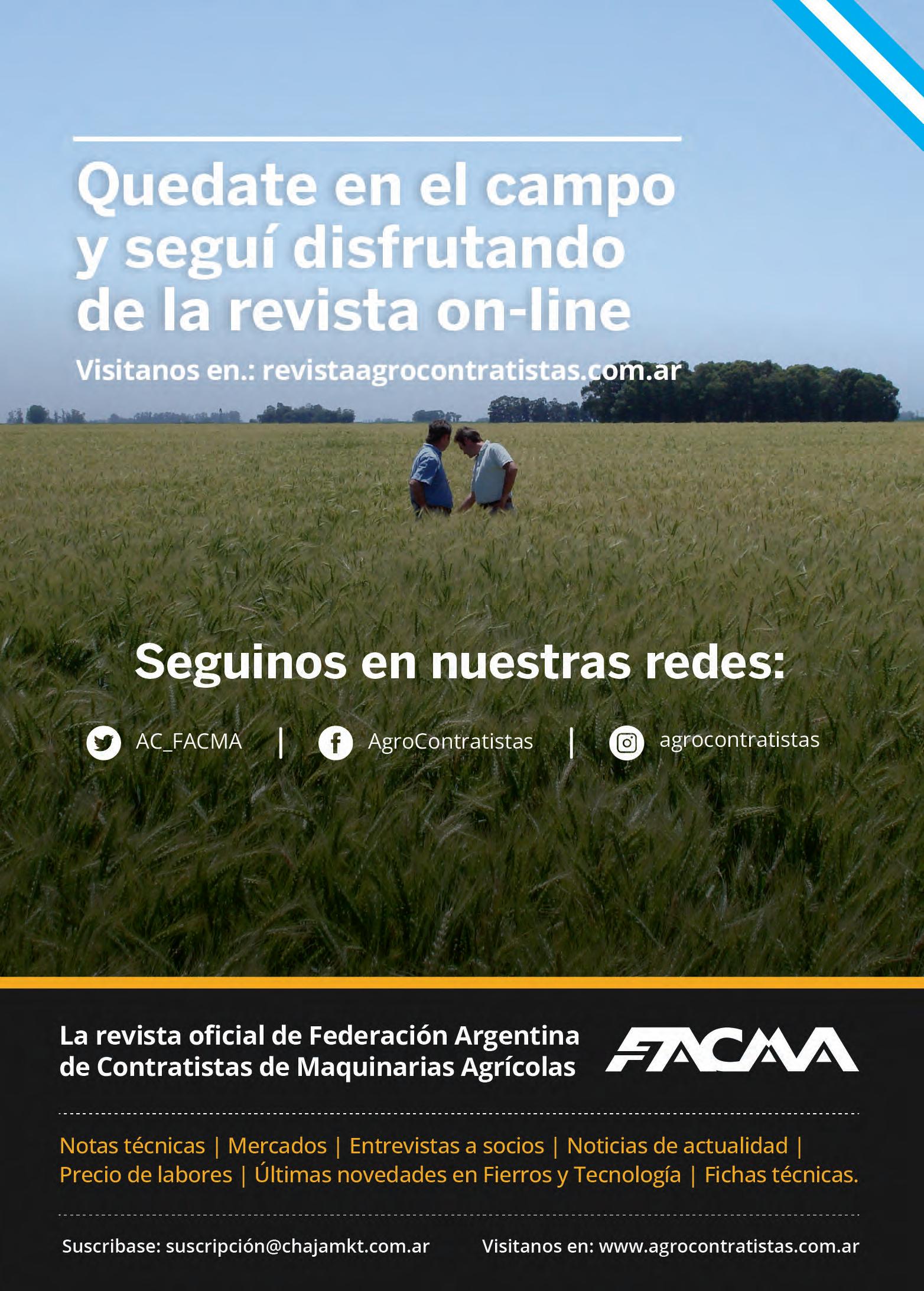 Agustín Bruzoni | agustin@chajamkt.com.ar Web | www.revistaagrocontratistas.com
