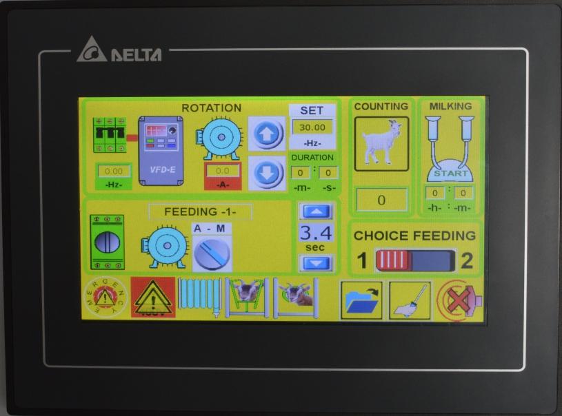 Rotary control panel . The 7 inches touch screen , allows quick, efficient and reliable operation of the rotary milking system. Its software was designed with main emphasis in optimum user experience, ease of operation & efficiency.