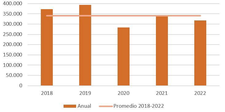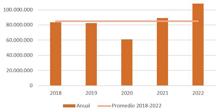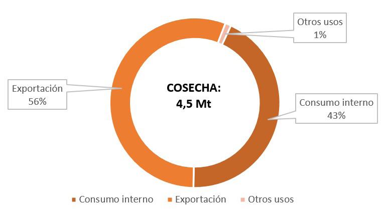 en 4,5 Mt con 2,5 Mt destinadas a la exportación y 1,95 Mt de uso interno.