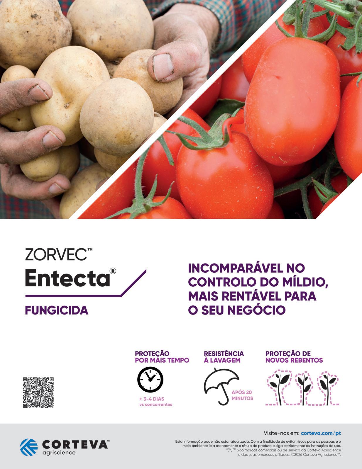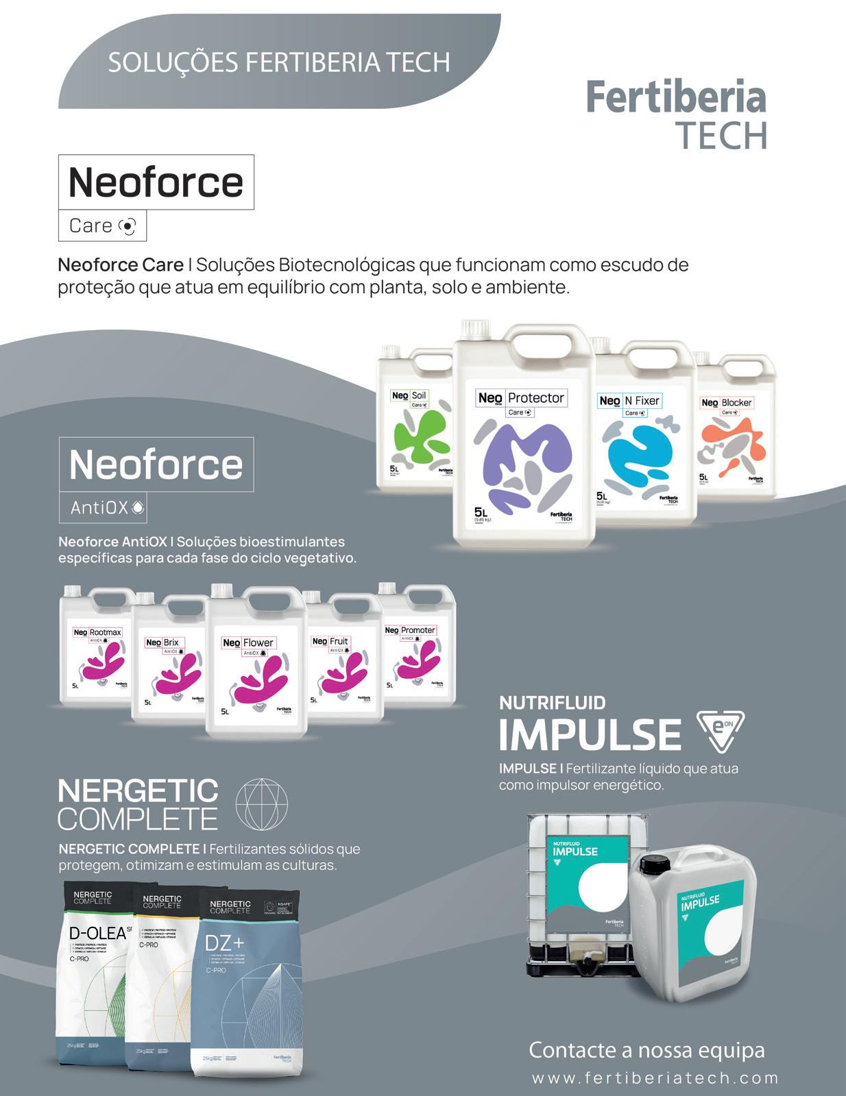 promovendo plantas mais equilibradas, com maior capacidade de resistência contra o ataque de pragas e fungos. O Sunfortis, por sua vez, é um bioestimulante à base de óxido de magnésio, desenvolvido para proteger as culturas contra o escaldão causado pelo aumento da radiação UV e IV, fenómenos que se têm intensificado nos últimos anos em que se registam verões cada vez mais quentes. A formulação do Sunfortis cria uma barreira protetora natural sobre a superfície vegetal, reduzindo a absorção excessiva de radiação e prevenindo a queimadura solar dos frutos e dos tecidos foliares. O magnésio, para além do seu papel nutricional, permite também manter a atividade fotossintética das plantas, atividade esta tendencialmente interrompida aquando da aplicação deste tipo de soluções, ajudando-as a conservar o equilíbrio fisiológico e a resistir aos danos causados pela radiação solar.