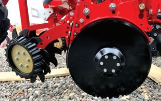 – Afasta torrões ou afasta palhas; equipamento fundamental quando trabalhamos em condições de mobilização mínima, sementeira direta, etc, o desempenho deste acessório é muito importante pois vai deixar a linha de sementeira limpa permitindo um bom contacto da semente com o solo. Alguns modelos têm um controlo automático de profundidade. O seu correto ajuste é fundamental para que a linha fique limpa e com solo fresco para uma boa germinação sem perda de sementes envolvidas em palha sem contacto com o solo (figura_8).