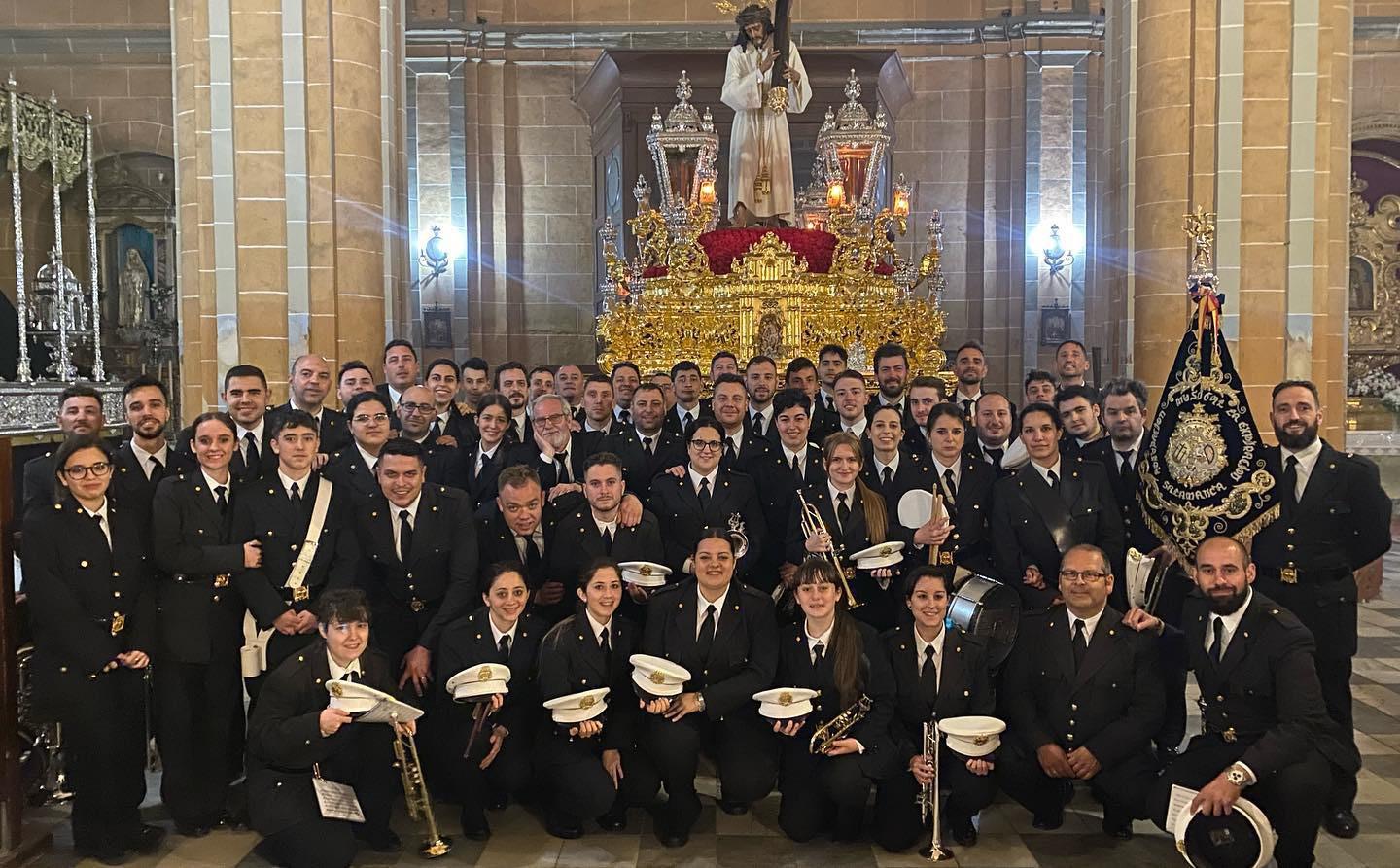 La Capilla Musical de la agrupación interpretó, a las puertas de la iglesia de la Purísima, varias piezas el año pasado en la boda del componente Javier Domínguez con su reciente esposa Eva. “Mi Pastora”, “Entrando en Jerusalén” y un recopilatorio de diferentes marchas procesionales adaptadas por Sergio Calles fueron las piezas elegidas para dicha ocasión.