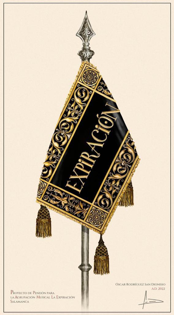 Óscar Rodríguez San Dionisio fue el encargado de presentar su trabajo, artista salmantino en el que la agrupación depositó su confianza para este encargo debido a que es una de las personas que mejor podía entender la idiosincrasia de la formación y la historia de esta ciudad. Esta combinación hizo de este proyecto un claro reflejo del camino que se está tomando hacia la seriedad y marca identitaria. Él mismo explicó, bajo la atenta mirada de todos los asistentes, cada uno de los detalles que conformaban el que será el nuevo guión y los nuevos mantolines para la cornetería. Estos últimos podrán ver la luz en este mismo año ya que se encuentran actualmente en producción, para ver el guión en la calle habrá que esperar un poco más.