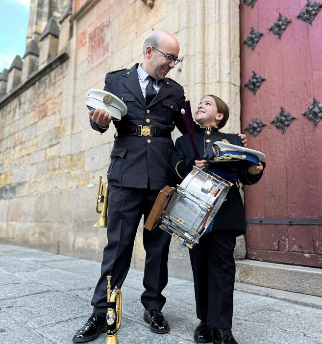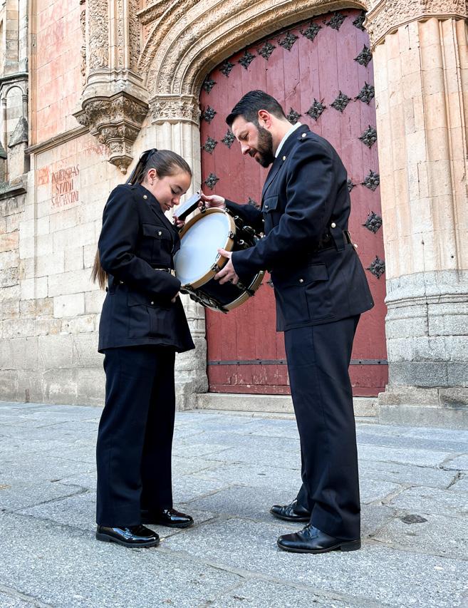 Padre e hija. Amantes de la música procesional que comparten afición, aunque no vistan el mismo uniforme. Él forma parte de la cornetería de nuestra agrupación y ella toca el tambor en la Agrupación Musical Virgen de la Vega, otra de las formaciones musicales de Salamanca.