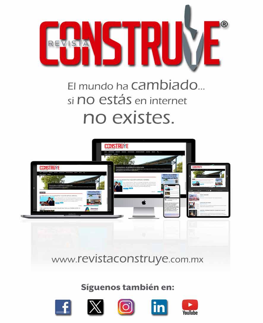 Revista Construye ® es una publicación de Corporativo GEDCA, S.A. de C.V. de distribución gratuita. Prohibida la reproducción total o parcial del contenido sin previa autorización por escrito de los editores. Los autores son responsables de sus artículos y no reflejan necesariamente el punto de vista de la empresa. IMPI ® 2434130