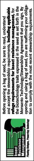 APPLICABLE, GRAIN MARKETING AND ALL OTHER STEWARDSHIP PRACTICES AND PESTICIDE LABEL DIRECTIONS. Roundup Ready® 2 Technology contains genes that confer tolerance to glyphosate. Glyphosate will kill crops that are not tolerant to glyphosate. Insect control technology provided by Vip3A is utilized under license from Syngenta Crop
