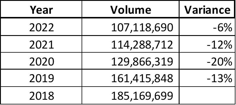 Michigan & Georgia – 2022 had the least volume among the four mentioned regions with YoY volume decreases.