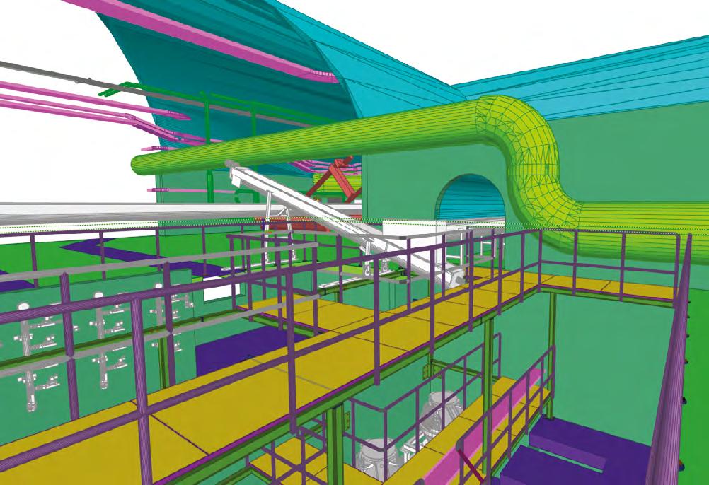 Para este projeto foram utilizados modelos tridimensionais, sendo posteriormente aferidos com mais rigor em levantamentos topográficos 3D que permitem efetuar um Building Model (BM), uma metodologia que permiti antecipar conflitos entre equipamentos e estrutura. É um passo importante nestes e noutros projetos para que se possa evoluir para BIM (Building Information Model), onde irá constar toda a informação detalhada de cada equipamento como a marca modelo, tamanho, características para manutenção, peso, custo, entre outros dados.